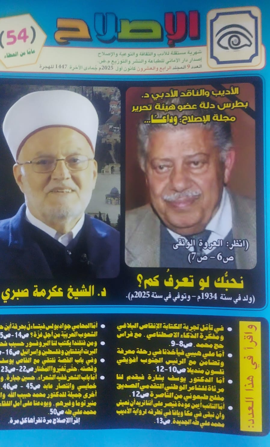 صدور العدديْن الثّامن والتّاسع من “الإصلاح” بغلافيْن يحملان صورة المفكّر مهدي عامل وصورة المرحوم د. بطرس دلّة وصورة الشّيخ عكرمة صبري